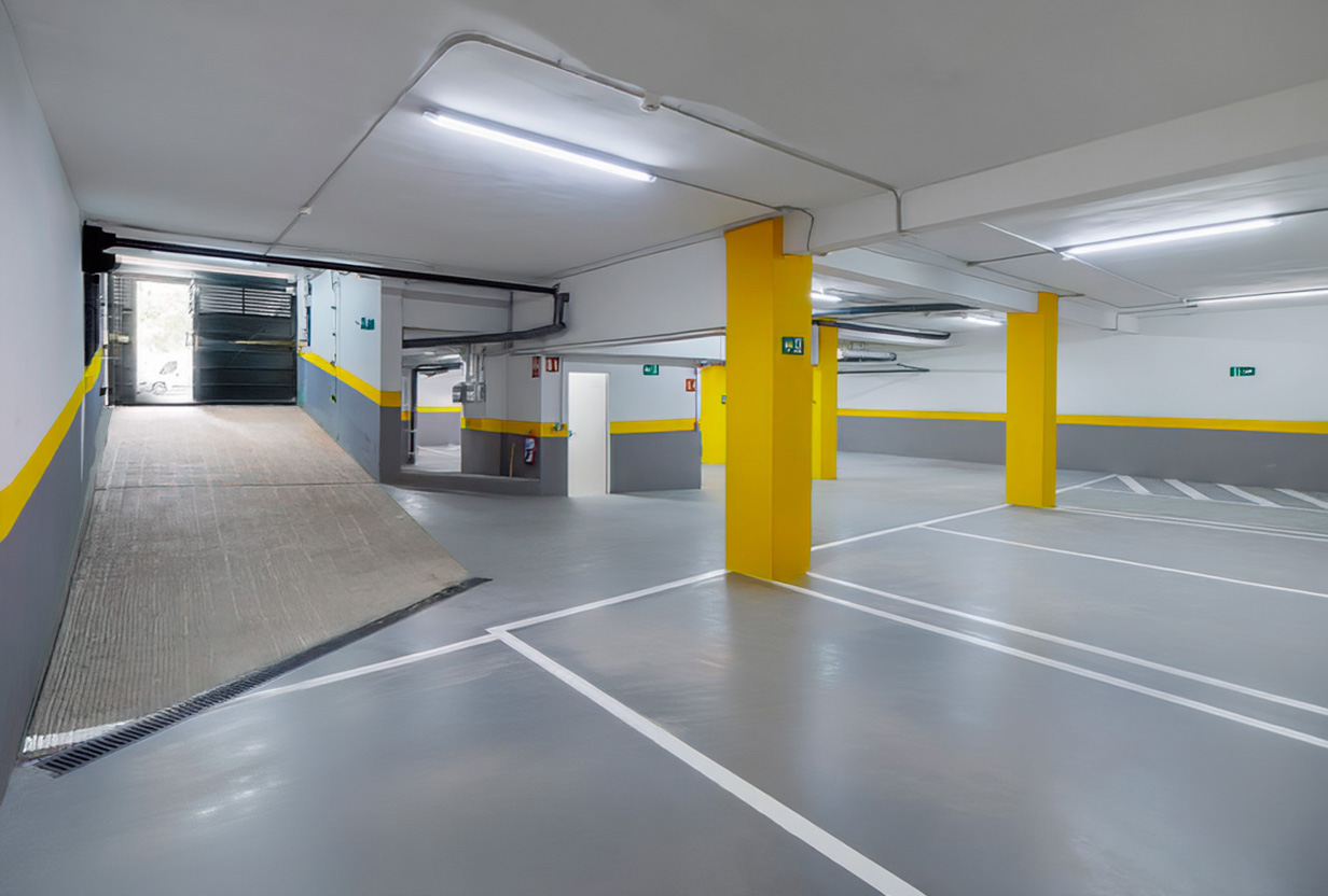 Trabajos de albañileria y pintura en los paramentos verticales de garaje comunitario, renovación de pavimento de garaje con previa preparación de superficie y posterior aplicación de imprimación acrilica vía agua. Instalación completa electrica zona de garaje, suministro y colocación de la puerta abatible automática, renovación del solado en la zona de acceso.