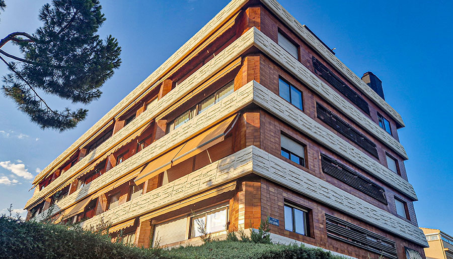 Trabajos de rehabilitación de las patologías existentes en las impostas de hormigón prefabricado en petos terrazas y jardineras de fachada por deterioro de las mismas con grave riesgo de caída de elementos desprendidos.