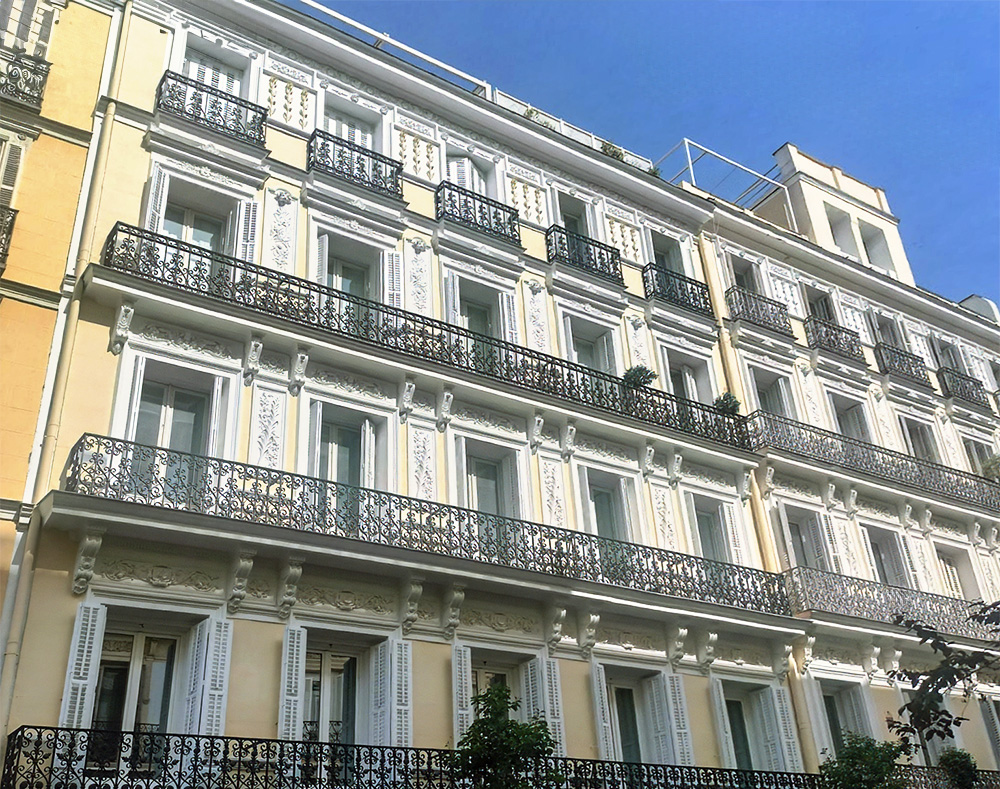 Rehabilitación de fachada principal, patios y medianera de la finca consistentes en picado de paramentos, restauración de frentes de terrazas, adornos, sustitución de baberos de zinc, posterior pintura pliolite, pintura de barandillas.